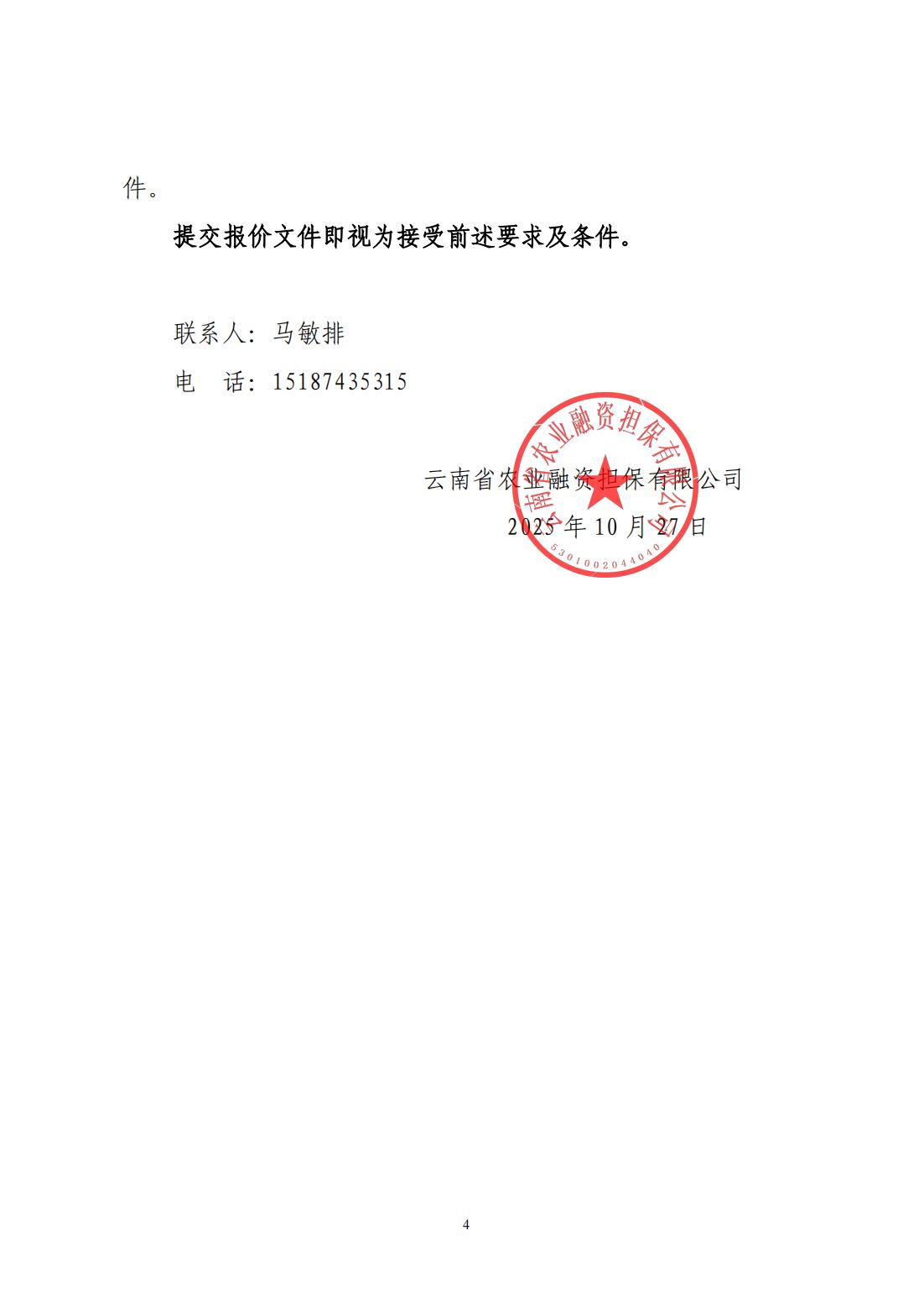 云南省農(nóng)業(yè)融資擔(dān)保有限公司詢價公告