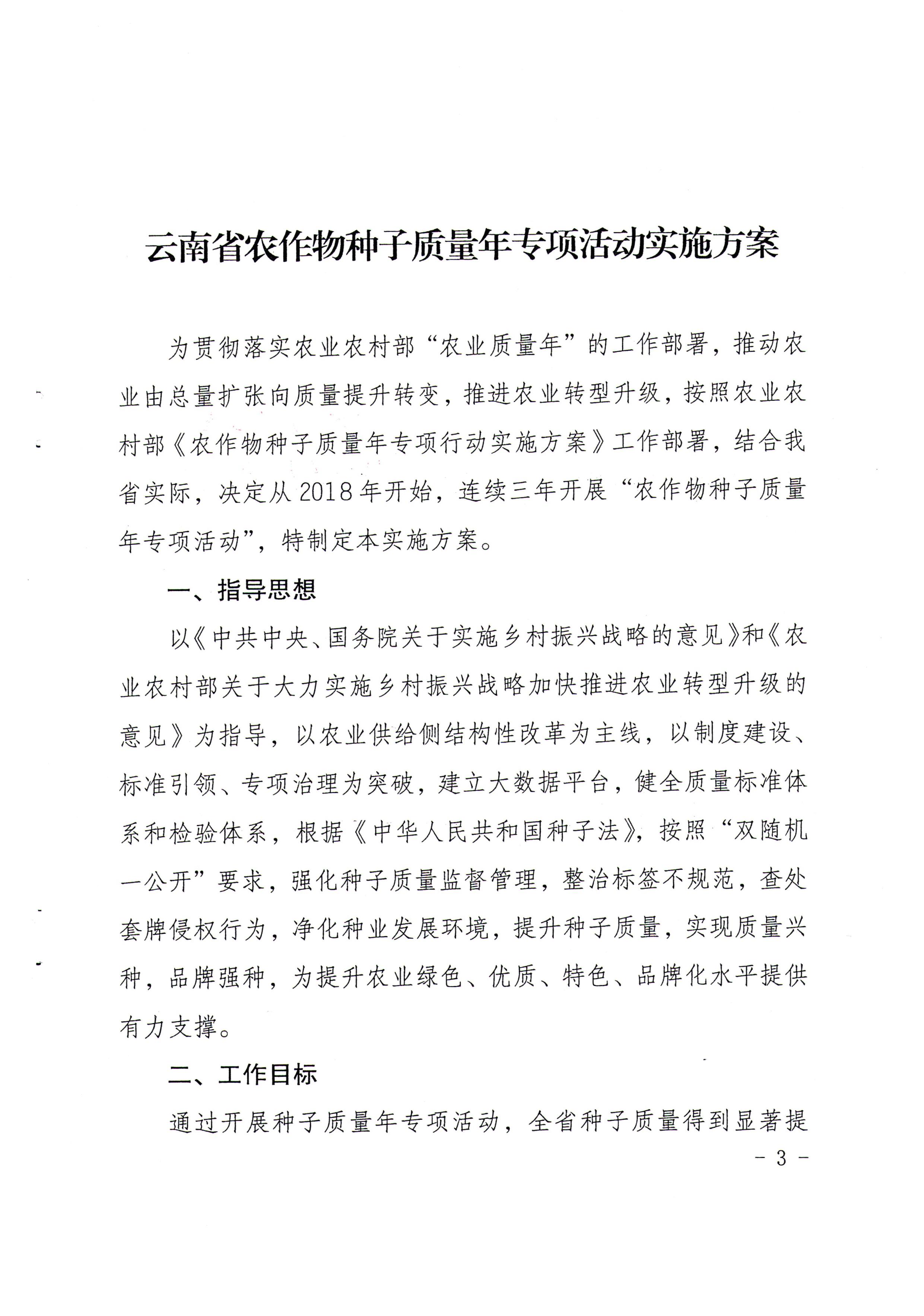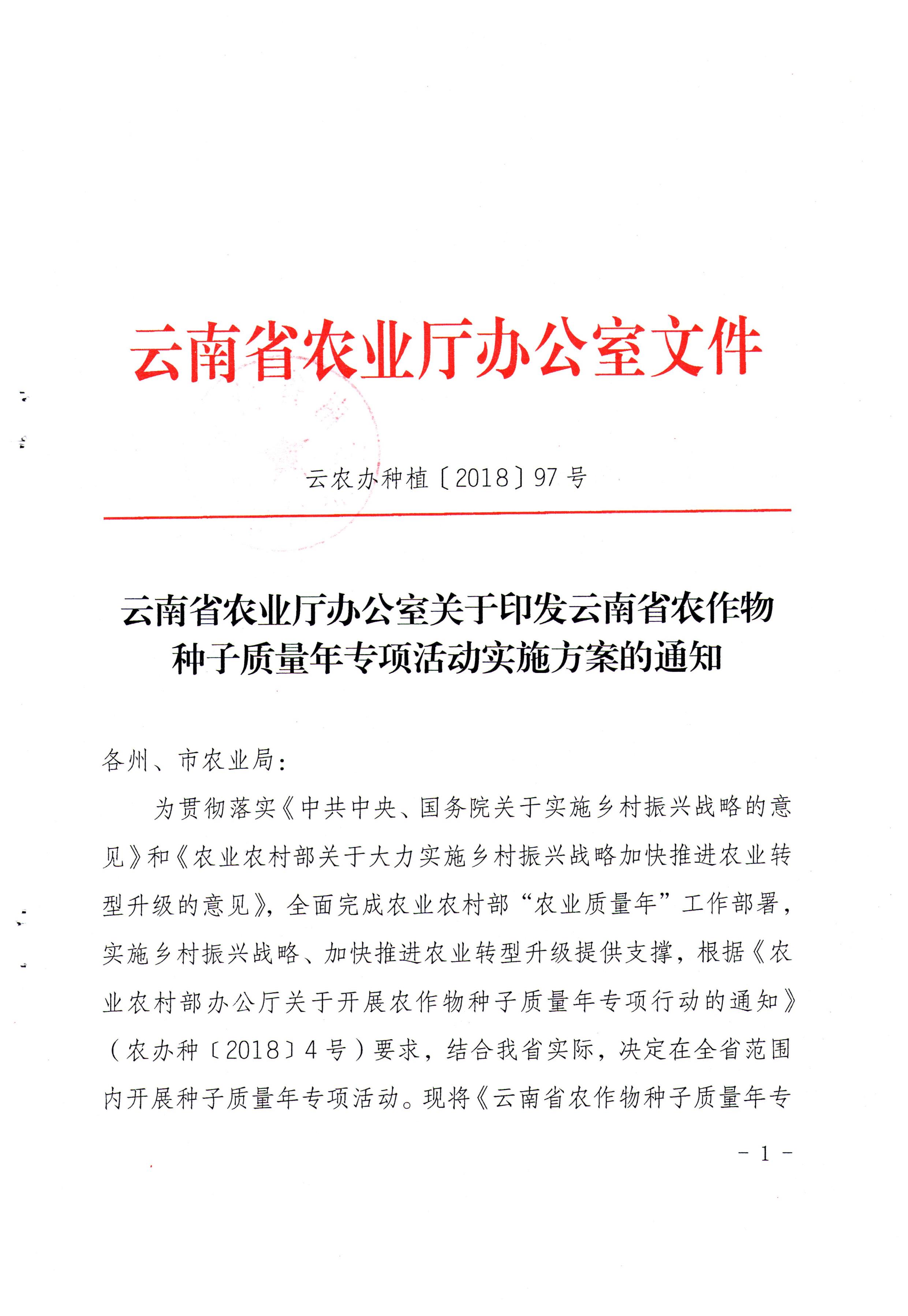 云南省農(nóng)業(yè)廳辦公室關(guān)于印發(fā)云南省農(nóng)作物種子質(zhì)量年專項活動實施方案的通知