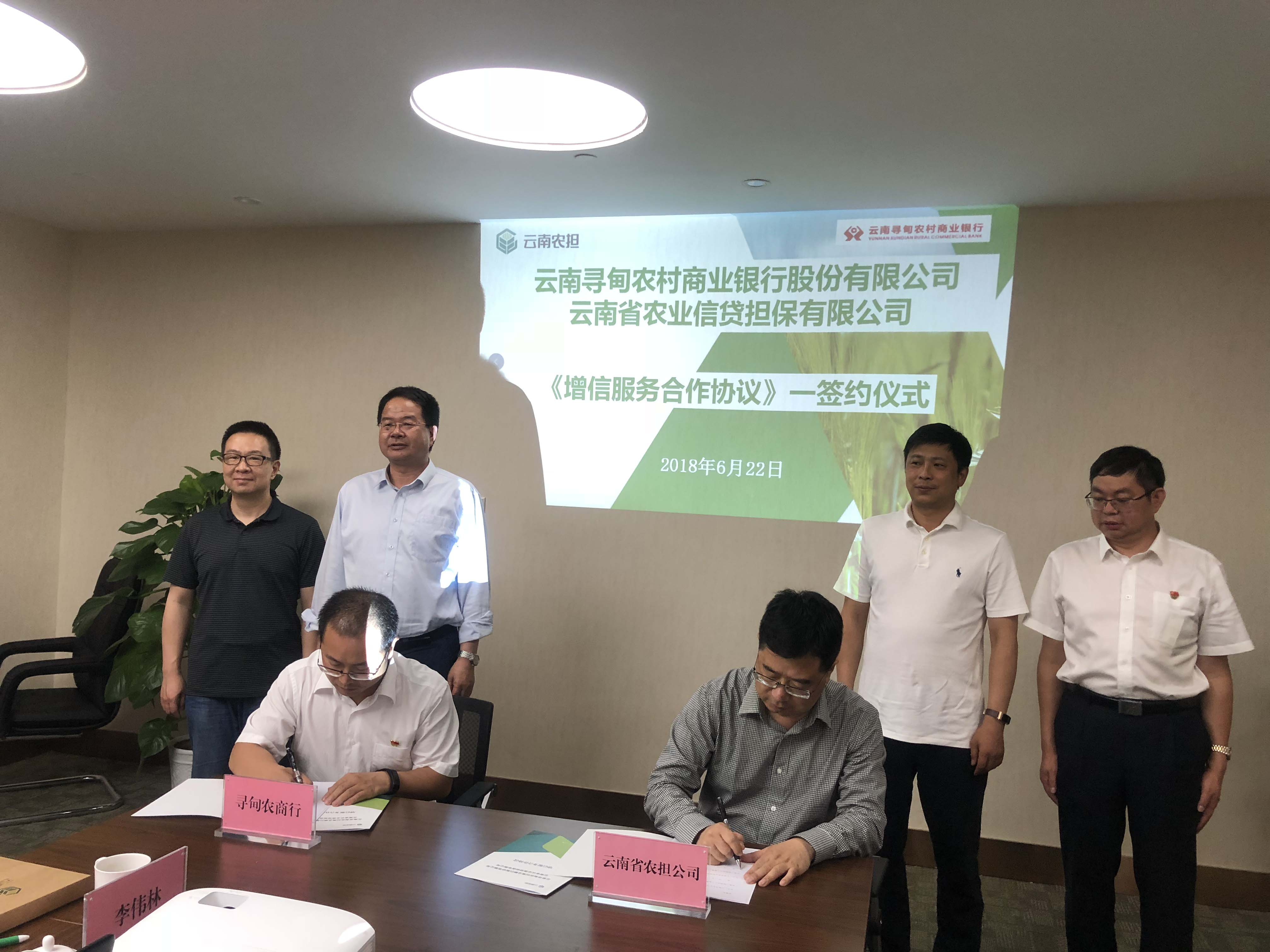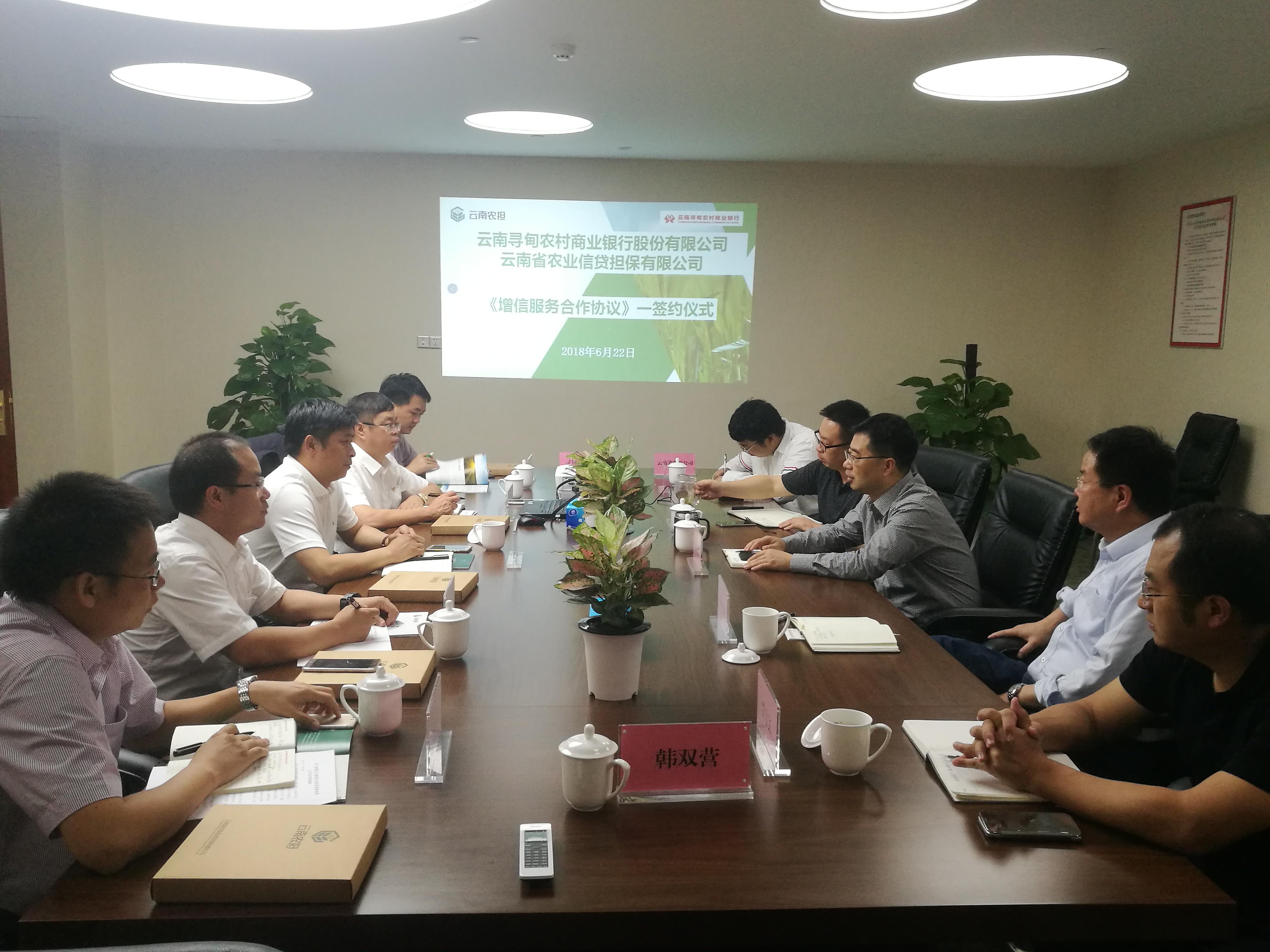 2018年6月22日,云南省農(nóng)業(yè)信貸擔保有限公司與云南尋甸農(nóng)村商業(yè)銀行股份有限公司在昆明召開銀擔合作座談會,并簽署《尋甸縣新型農(nóng)業(yè)經(jīng)營主體增信服務(wù)合作協(xié)議》。省農(nóng)業(yè)信貸擔保有限公司董事長郭影、總經(jīng)理杜開波、副總經(jīng)理廖寅皓,尋甸農(nóng)商行董事長虞燕林、行長李葉忠、副行長范彪等領(lǐng)導(dǎo)參加座談。