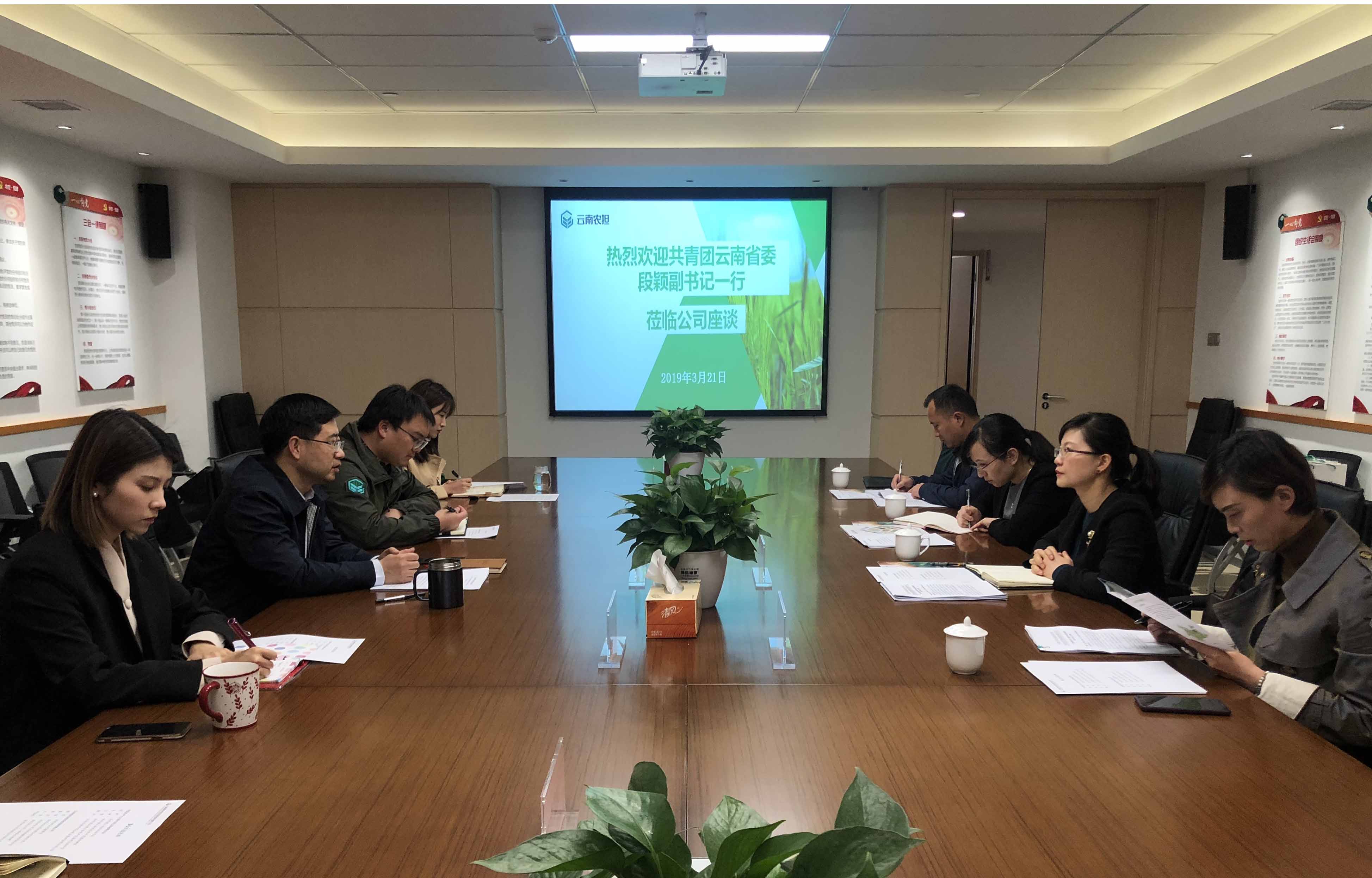 3月21日,共青團云南省委副書記段穎率青年發(fā)展部、青年創(chuàng)業(yè)就業(yè)基金會赴公司就雙方合作進行座談。公司董事長郭影、風險控制部、業(yè)務二部、機構合作部參加會議。會上雙方圍繞加快推進中國青年農業(yè)創(chuàng)業(yè)金融扶持專項計劃先期試點工作深入交換意見。