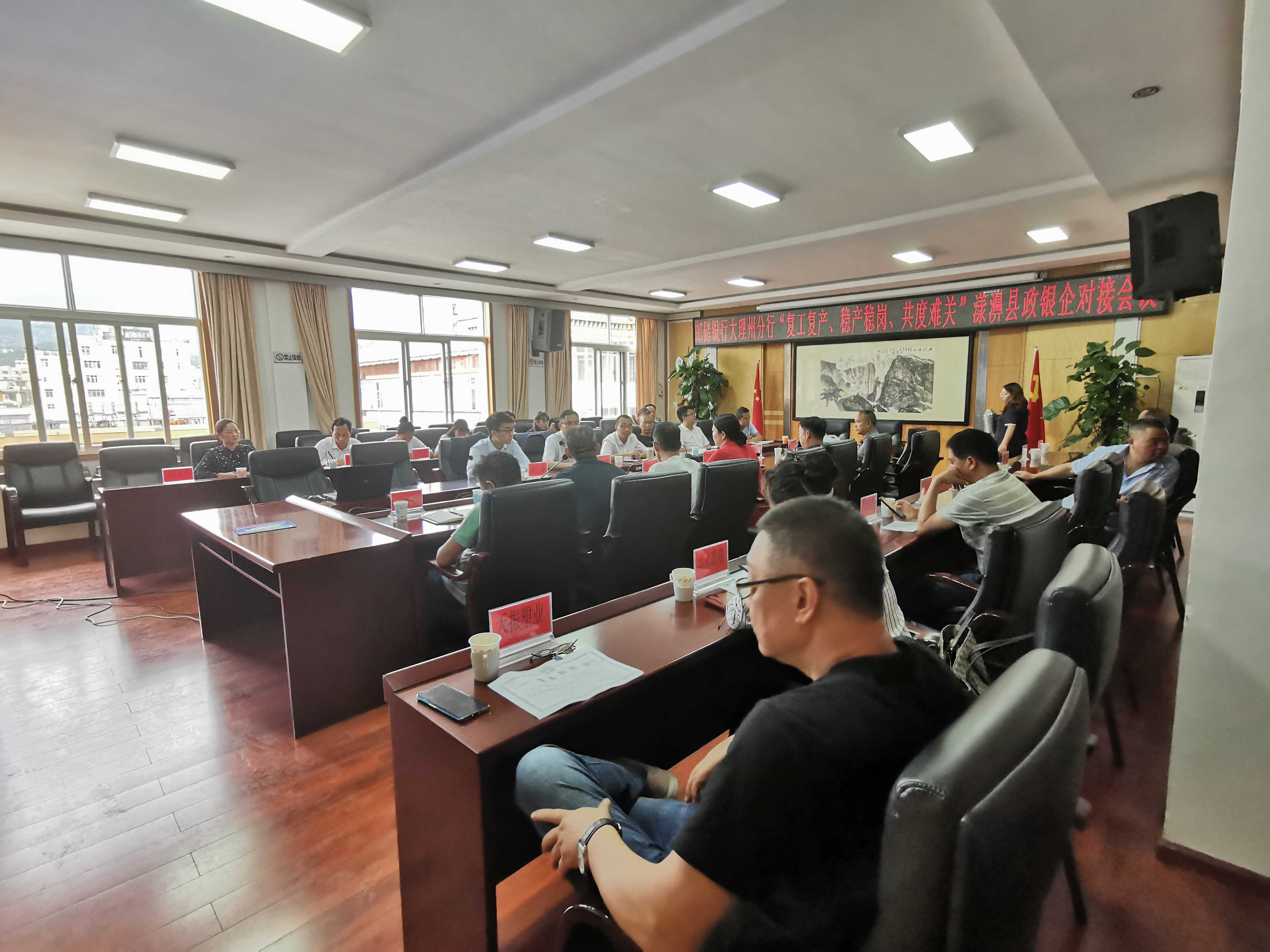 2020年8月29日,大理辦事處應(yīng)郵儲(chǔ)銀行大理分行邀請(qǐng),參加漾濞縣銀企對(duì)接會(huì)議。參加會(huì)議的有漾濞縣人民政府施文妍常務(wù)副縣長,縣工信局、財(cái)政局、扶貧辦、農(nóng)業(yè)農(nóng)村局、林業(yè)草原局、縣人行以及漾濞縣主要小微企業(yè)和合作社,會(huì)議由工信局趙波局長主持。